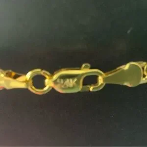 This is a brand new 24k gold over silver Figaro classic necklace from Nordstrom. It has a superior shine and with 24k gold it will last beautifully. It is a timeless addition to your jewelry collection. Its elegant design complements any style. This necklace is not just shiny but flexible and easy to wear.