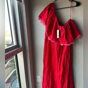 New with tags Tuckernuck Hibiscus Elegant Red One-Shoulder Dress