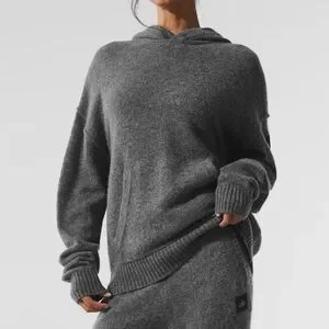 alo cashmere wool blend hoodie/sweater. Super soft and cozy, this material has a fuzzy texture because of the cashmere. Currently selling at alo for $458 CAD + tax. Label has been removed, see measurements.