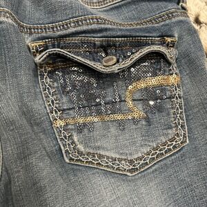 Rare American Eagle Women's Distressed Kick Boot Jeans Size 10 Bling Pockets