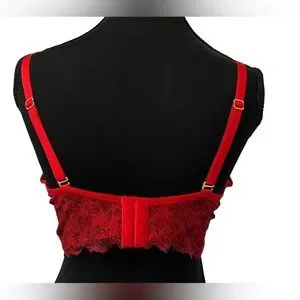Elevate your wardrobe with this chic scarlet lace bra. Designed for both comfort and allure, it's a perfect addition to any outfit. With push up and removable straps for a versatile and flattering look!