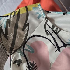 Love & Legend beautiful heart and leaf pattern dress. Nature themed and brightly colored. Adds a bright statement to any wardrobe.