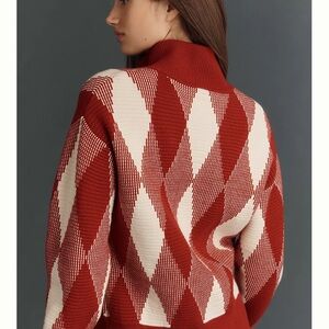 Chic geometric cardigan by Varley. Features bold red and cream design. Ideal for layering.
