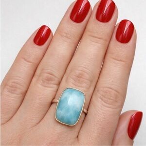 Larimar Solid Sterling Silver Ring 925 Size 8.5