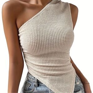 SHEIN 2 pack Cream One-Shoulder Knit Top/ Brown One-Shoulder Knit Top
