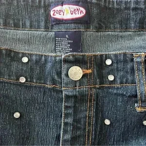 Tags | Zoey Beth, Mini Skirt, Size Large, Denim, Rhinestones, 2000s Fashion, Y2K Style, Vintage, Retro, Embellished, Designer, Nostalgic, Casual, Trendy
