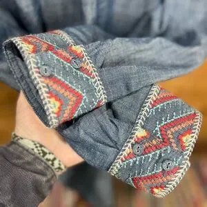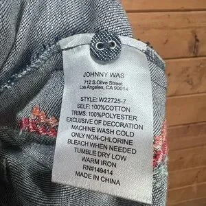 Soft structured denim in that signature Johnny Was artistry — richly detailed embroidery blooms across the front, sleeves, and hemline, with striking equine motifs that give the piece movement and story. The partial zip neckline adds a modern edge while the tunic length keeps the silhouette effortless, flattering, and easy to style. A rare blend of western romance and elevated bohemian craftsmanship.
