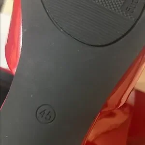 Bold red mules with a glossy finish. Sleek and stylish design.