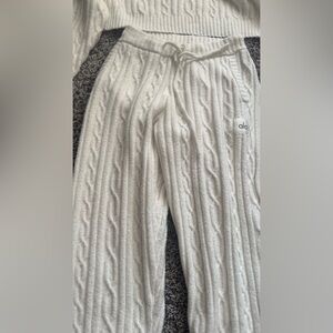 ALO Yoga White Cable Knit Set, top and bottom. Size xxs.