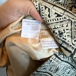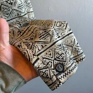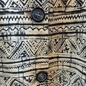 Jones New York Black White Tribal Print Silk Blazer Jacket Size 14