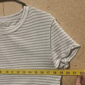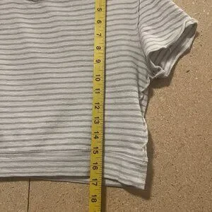FREE PEOPLE We The Free Top Cropped Size Medium Sabrina Striped Terry Casual gray/white Women’s crew neck Short Sleeve
