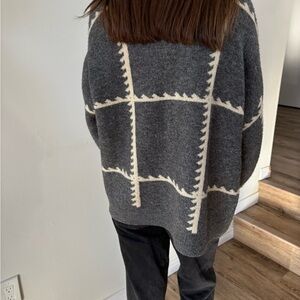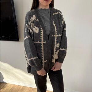 Anthropologie Gray and Cream Patterned Cardigan