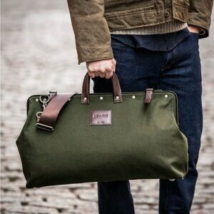 • A hardy tool-style duffel inspired by old-school stonemasonry gear