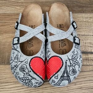 Birkis Dorian Clogs Birko-Flor Gray Paris Heart Rose Love EU 40 US 9 Eifel