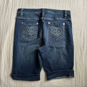 stylish denim jean shorts with unique embroidered pocket design