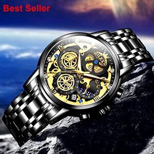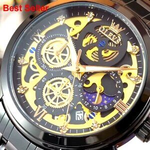 A sophisticated timepiece featuring a skeleton design with sun and moon phase disc, designed for accurate timekeeping and luxury styling. Ideal for business, dress occasions, or as a thoughtful gift.