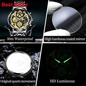 Stainless Steel Skeleton Chronograph Watch Water Resistant Luxury Business