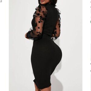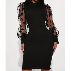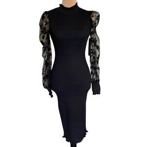 ✅ New with tags. Size S. Almost Famous Womens Ribbed Bodycon Midi Dress in Size S. This stunning dress comes in a black color with a sleek and stretchy ribbed body that hugs the figure beautifully. The highlight of this dress is its sheer puff sleeves with textured floral details, adding a touch of elegance and uniqueness.