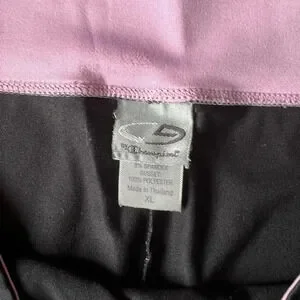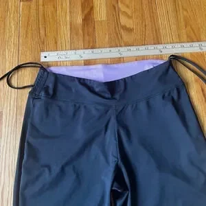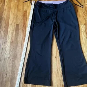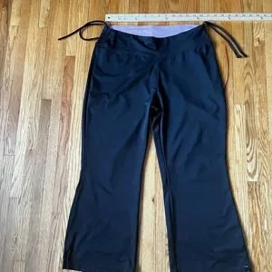 Champion workout pants, size XL. All black with decorative strings on each hip. In good used condition, no rips tears or stains. Capris length.