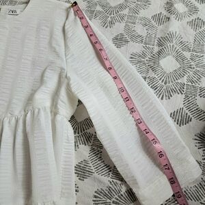 Zara Sharon Viral Shift Dress Womens SzL White Textured Tiered 3/4 Sleeve Mini