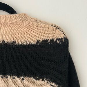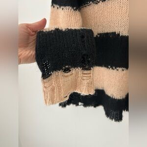 Excellent condition, no flaws ( the sweater is made with the distressed fabric )