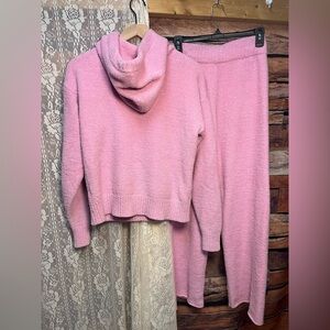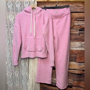 Buttery soft and cozy but lightweight sweat set from Ugg in adorable bubble gum pink. Women size small in good preowned condition. This is the hoodie with pockets set (the first model is wearing the zip-up version). Hoodie measures 20” across bust with 22” length. Pants measure 13-14” waist with 27-28” inseam. Will ship same/next day. Make me an offer to make it yours :)