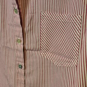 This shirt from Chico's is in excellent preowned condition and has barely been worn - no flaws. Pink and White Striped Pattern. Lightweight Cotton and Polyester. Size XXL (chico's Size 3).