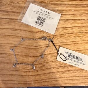 Coach Mini Charm Bracelet Silver Tone w/ 4 Charms NWT Adjustable up to 8”