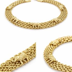 This exquisite gold bracelet features charming elephant motifs, adding a unique touch to your style.