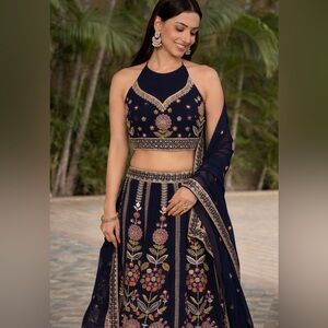 Navy Blue Lehenga 3pc Set - Stunning Work, Good Quality, Structured Skirt