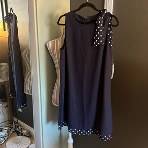 🛑 1 hour sale. NWT. Tahari. Size 14. Elegant Navy Blue Polka Dot Shift Dress