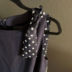 Step out in style with this elegant navy blue dress featuring charming polka dot accents. Perfect for any occasion, this dress combines classic design with a modern twist.