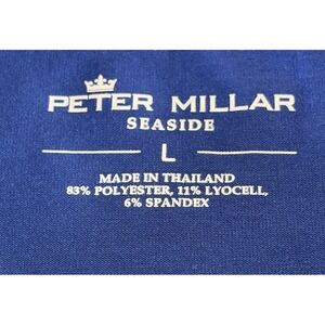 The Peter Millar Seaside Golf Polo in Men's size Large is a stylish and performance-driven shirt designed for golf enthusiasts. The blue embroidered polo features a solid pattern with a dark fabric wash, making it ideal for the summer, fall, and spring seasons. With short sleeves, a collared neckline, and a button closure, this polo offers both style and functionality on the golf course. Made from a blend of polyester, spandex, and lyocell, this polo provides stretch for added comfort and flexibility during movement. Machine washable for easy care, this polo is a versatile and high-quality addition to any man's wardrobe.