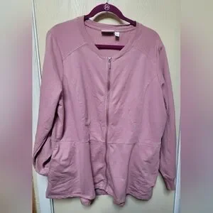 New Denim & Co Mauve Zip-Up Cardigan