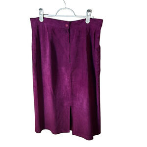 Turn heads in this bold and beautiful Danier leather pencil skirt in a striking fuchsia tone. Crafted from genuine leather, this high-waisted skirt features a sleek, tailored silhouette with a back zip closure and modest slit for ease of movement. Fully lined for a smooth, comfortable fit. A standout piece that pairs effortlessly with both structured blouses and casual tees.