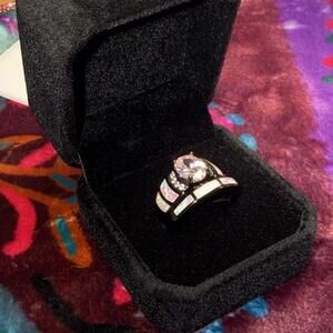 Black Pink CZ Ring Sz 7.5 Engagement Wedding Set Iridescent Inlaid Band Gift Box