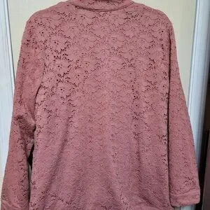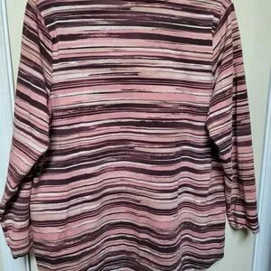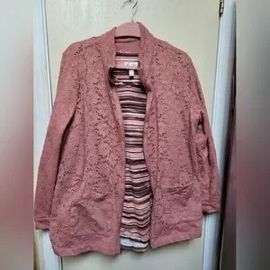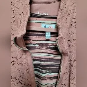 Elevate your style with this elegant pink lace zip cardigan jacket, with matching striped top. comfortable and stylish.