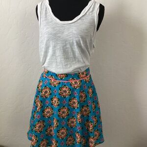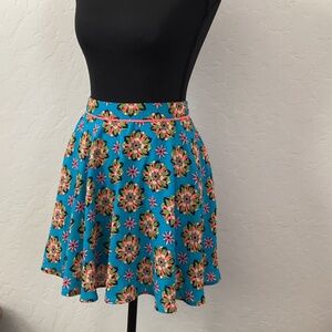 NEW WITHOUT TAGS! This Flying Tomato mini skirt is perfect for on a hot day. The Florine’s allows for a nice breeze to come through. It’s a size small and is fully lined. The orange and green flowers are on a beautiful blue background.