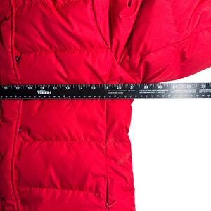 Lands End Red Down Puffer Coat Womens Medium Faux Fur Hood Warm Winter Jacket