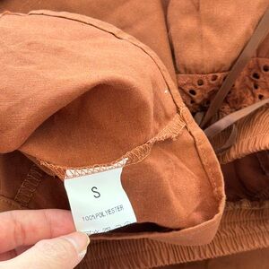 Elegant brown skirt set perfect for any occasion. Features intricate detailing for a stylish look.
