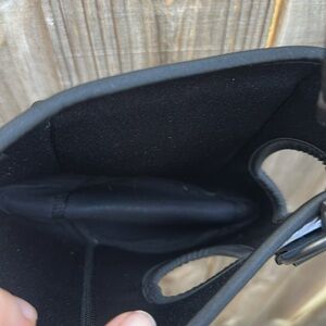 Featuring a beautiful floral design on a black background, this carrier combines fashion with convenience.