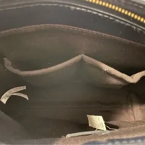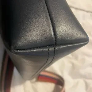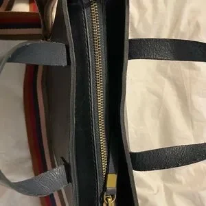 Chic navy blue crossbody bag by Madewell. Features a vibrant multicolor strap. Ideal for everyday wear. Zippered top with 2 interior pockets. Comes with the thicker multicolor strap and a thinner navy blue leather strap. Both adjustable. Minimal use (refer to the pictures)