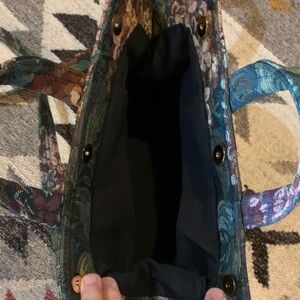 Elegant floral tapestry design. Features a detachable shoulder strap. Perfect for any occasion.
