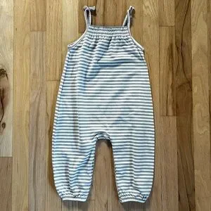 QUINCY MAE smocked periwinkle stripe jumpsuit romper size 18-24 month
