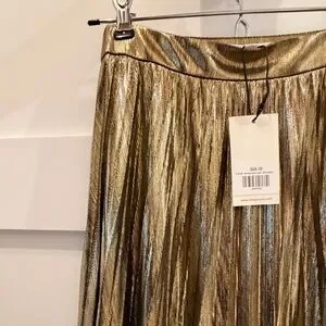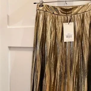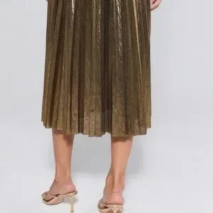 Hensley Gold Pleated Midi Skirt