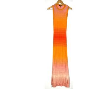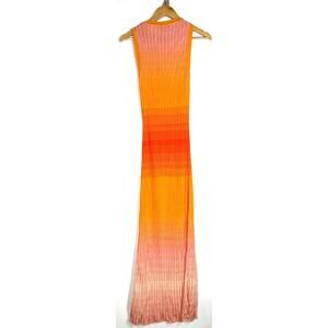 Maje Tie Dye Maxi Dress Rib Knit Sleeveless Tank Sweater Orange Ombre 36