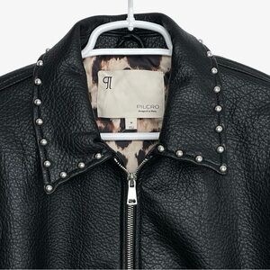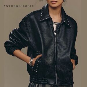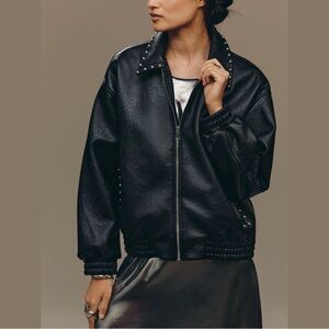 Anthropologie Pilcro Rylie Studded Faux-Leather Bomber Jacket Black Medium NWT