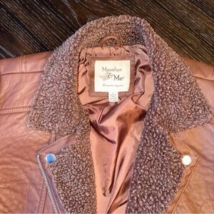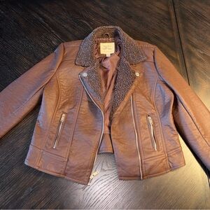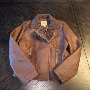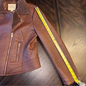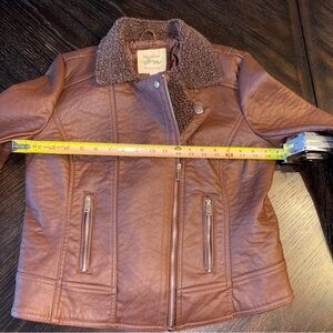Maralyn & Me Brown Aviator Moto Jacket Faux Leather Shearling Sz Large