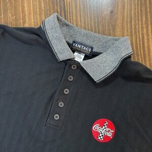 VANTAGE Polo Shirt Mens XL Black Coca Cola NASCAR Embroidered 100% Cotton