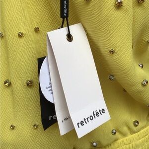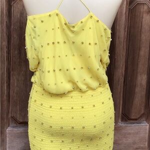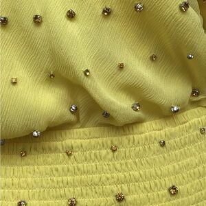 Chic yellow mini skirt with elegant embellishments. Perfect for a stylish look.